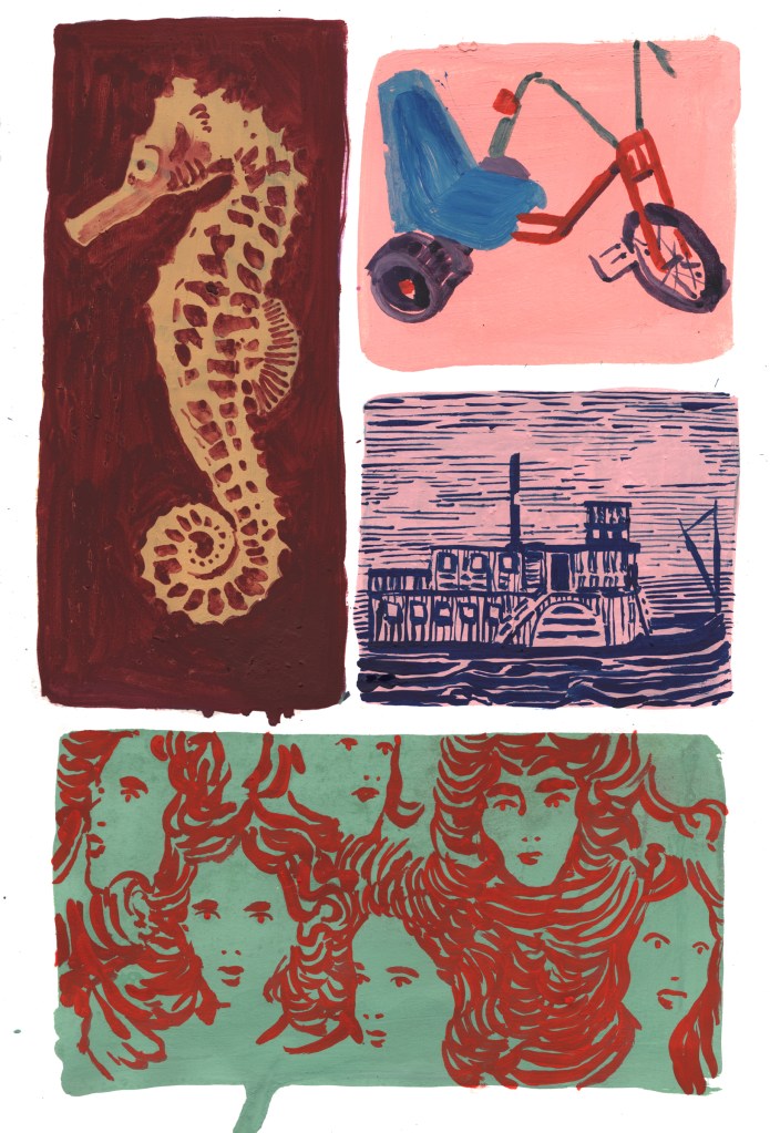 Tous azimuts, la convocation et la juxtaposition des images créent un étonnement (oh !), une interrogation (pourquoi ?) voire une énigme (mais…).